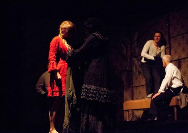 Teatr Scena Polska z Czeskiego Cieszyna zaproponował widzom jedno z najstarszych i najskuteczniejszych rozwiązań – dekorację na obrotowej scenie. Dzięki temu widzimy śmierć Lichwiarki i jej siostry, Lizawiety; jak gdyby symultanicznie śledzimy losy Soni i jej rodziny, Raskolnikowa, jego siostry i matki, Porfirego i innych urzędników wymiaru sprawiedliwości – a akcja, jak w kalejdoskopie, przenosi się raz na ulicę, raz do poszczególnych domów bohaterów.